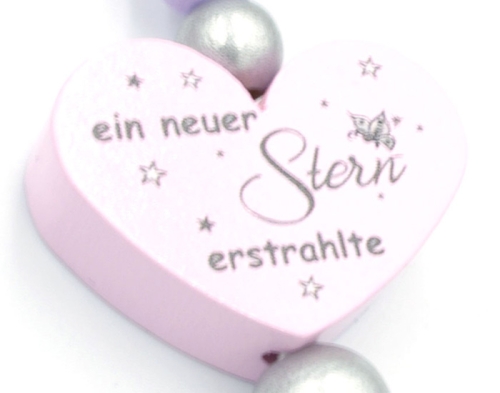 In Liebe handgefertigte Kinderwagenkette mit Namen - Für einen Augenblick... "Juna" verschönert mit dem Wunschnamen Ihres Babys wird diese Kinderwagenkette zu einem einzigartigen Unikat. Unsere Kinderwagenketten mit Namen sind stets ein sinnvolles und ganz persönliches Geschenk für Ihr Baby. Auch für Taufe oder Baby-Shower sind unsere Kinderwagenketten genau das Richtige. Die hübschen Kinderwagenketten lassen sich durch praktische Clips am Kinderwagen befestigen und bieten Ihrem Kind spielerische Abwechslung. Unsere personalisierten Kinderwagenketten bestehen aus hochwertigen Perlen und Holzelementen, die bei Ihrem Baby Neugier und Freude wecken. Selbstverständlich können Sie bei unseren Kinderwagenketten auf ein Produkt von höchster Qualität vertrauen. Unsere Kinderwagenketten werden mit viel Liebe und Sorgfalt in Handarbeit gefertigt. Wählen Sie aus unserem breiten Sortiment zum Beispiel Kinderwagenketten in Ihrem Lieblings-Design – wir fertigen die Kinderwagenketten dann nach Ihren Wünschen und mit dem Namen Ihres Babys an und senden Ihnen das Unikat bequem nach Hause. So entstehen personalisierte Kinderwagenketten und vieles mehr, die Geschenke der ganz besonderen Art sind. Bestellen Sie jetzt hochwertige Kinderwagenketten hier im Onlineshop! Außerdem werden, wie all unsere Artikel, die Kinderwagenketten nach strengen Richtlinien und Qualitätsstandards angefertigt. Mit jeder unserer Kinderwagenketten bieten wir Ihnen ein sicheres Produkt, dem Sie komplett vertrauen können. Das beginnt für uns schon bei der sorgfältigen Auswahl der Materialien für unsere Kinderwagenketten. Bitte beachten: Je nach Anzahl der Buchstaben, variiert auch die Anzahl der verwendeten Motiv-/ Holzperlen. Sollten Sie fragen oder Sonderwünsche zum Produkt haben, können Sie uns gerne (Bitte vor dem Kauf) kontaktieren. Zahlen, Umlaute & Sonderzeichen sind leider nicht möglich. Bitte lesen und beachten Sie vor dem Kauf unsere Sicherheits-/ Pflegehinweise, diese finden Sie oben im Raster unter Sicherheits-/ Pflegehinweise, ebenfalls werden diese jeder Bestellung beigelegt.